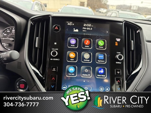 - Radio: Subaru 11.6" Multimedia Plus System -inc: AM/FM stereo HD Radio, multi-touch gesture high resolution display screen, voice activated controls, Bluetooth® audio streaming and hands-free phone connectivity w/SMS text messaging connectivity (refer to subaru.com for cell phone compatibility), iPod control capability, smartphone integration for Android Auto and Apple CarPlay w/full screen view and wireless connection, USB audio system update, audio system control switches, hands-free phone switches and voice command talk switch on steering wheel, 6 speakers, illuminated 3.5mm auxiliary input jack, illuminated USB A and C input/charge ports, SiriusXM w/360L (requires an active subscription: 4 months free trial included/subscription required after) and SiriusXM Travel Link (requires an active subscription: 4 months free trial included/subscription required after)