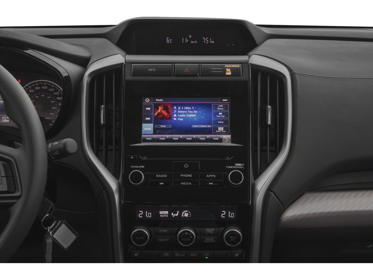 - Radio: Subaru STARLINK 6.5" Multimedia System -inc: AM/FM stereo HD Radio w/single disc CD player, MP3/WMA/CRR/RW file capability, multi touch gesture high resolution LCD display screen, Bluetooth® audio streaming connectivity, Bluetooth® hands-free phone connectivity, iPod control capability, SiriusXM All Access radio (subscription required), SiriusXM Travel Link (subscription required), smartphone integration for Aha, Android Auto, CarPlay and Pandora, STARLINK cloud applications, steering wheel controls for audio and Bluetooth®, 6 speakers, 3.5mm auxiliary input jack and front and rear dual USB ports